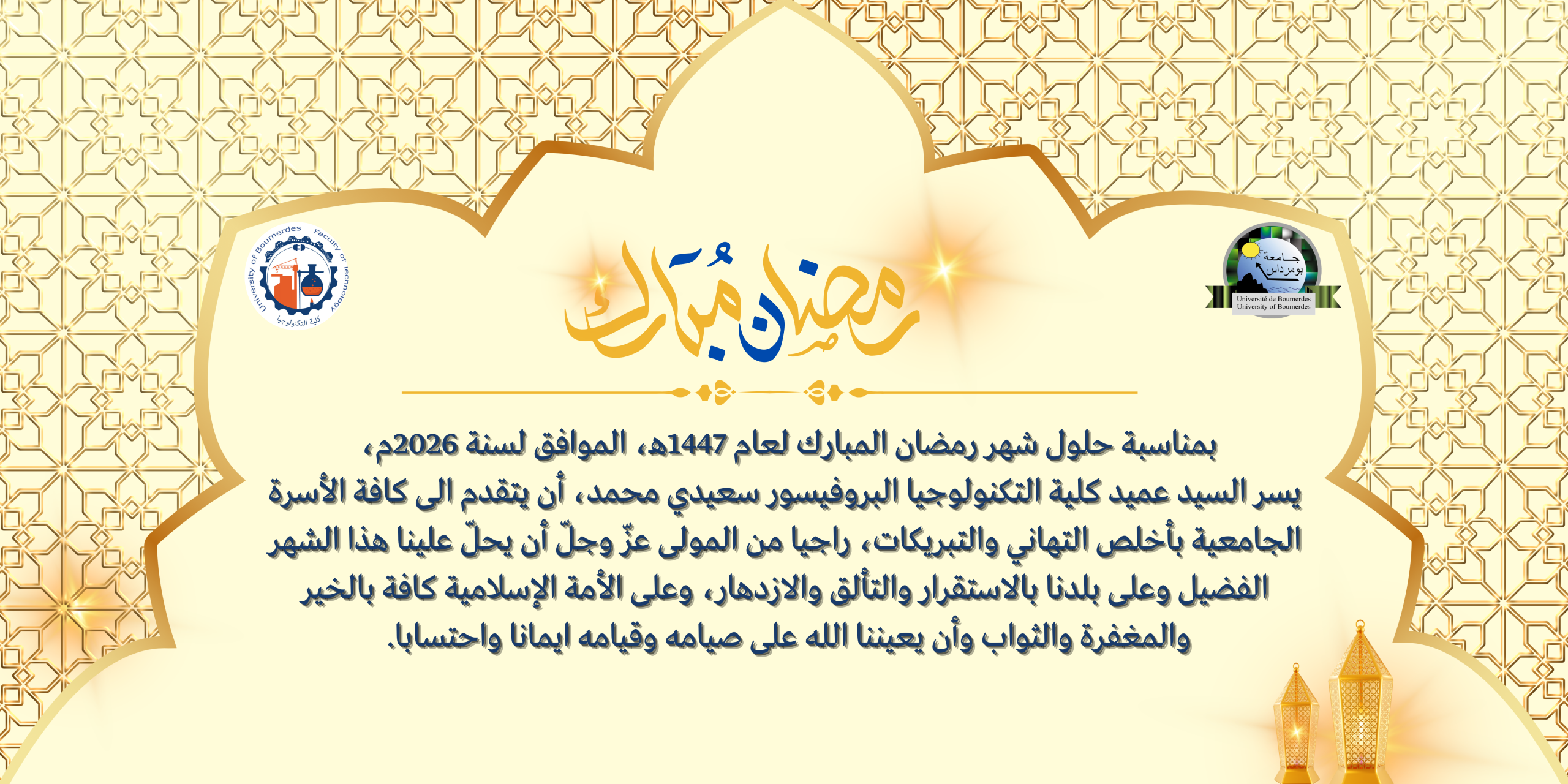 يُدعى الطلبة والأساتذة الراغبون في الترشح إلى التقرب من إدارات الأقسام المعنية في الآجال المحددة