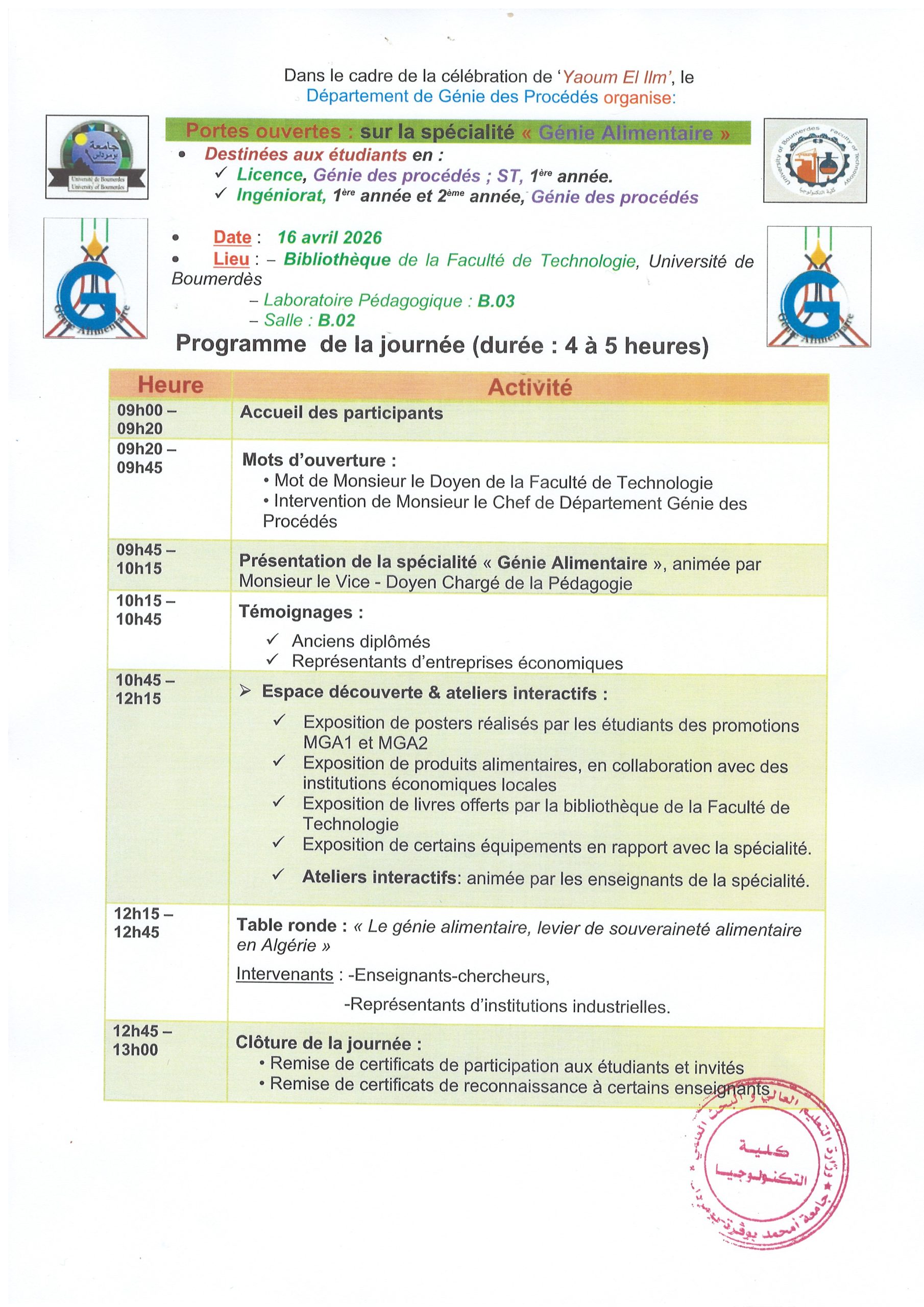 The students of the Faculty of Technology are informed that it was decided at the meeting of 08/11/2023 to standardise the method of assessment of continuous assessment in accordance with current regulations.